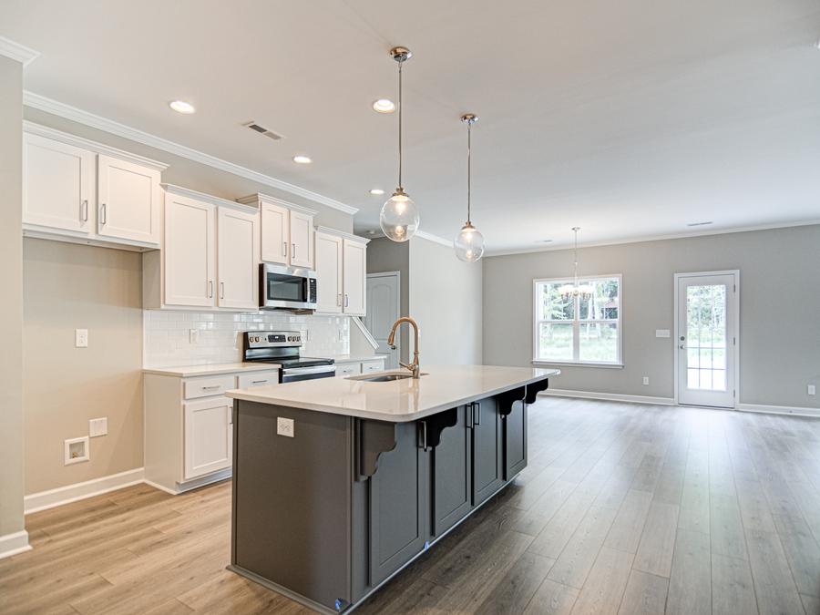 - Open Concept Living Area: The heart of the home is an open concept living area that seamlessly connects the great room, dining area, and kitchen.