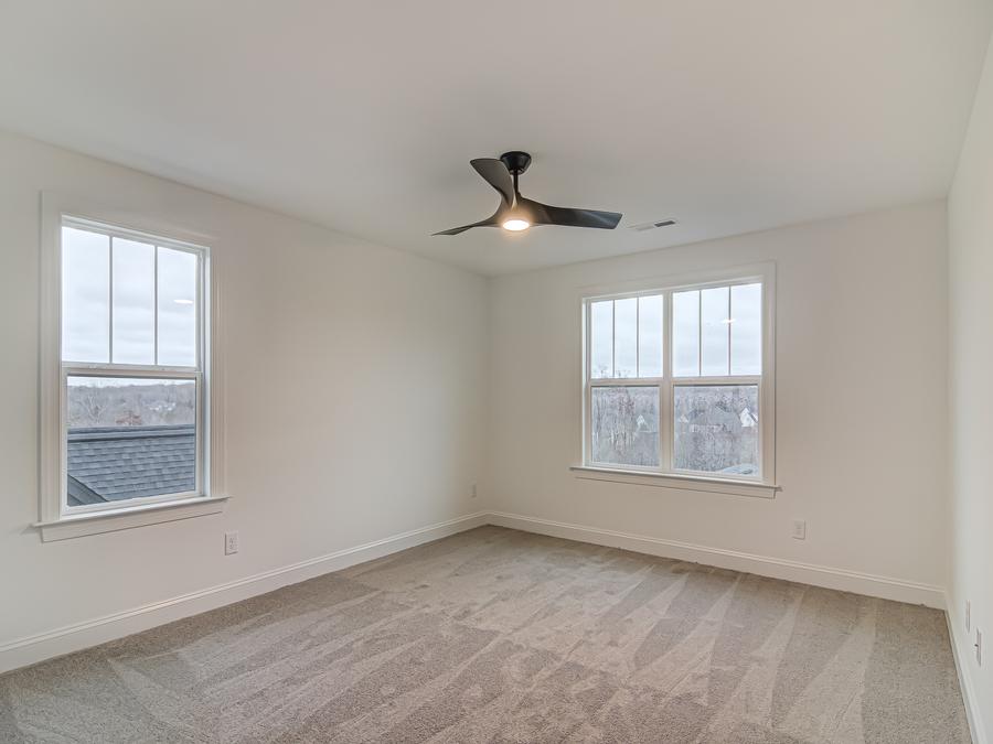 Upstairs, three additional bedrooms provide ample accommodation. Two share a Jack-and-Jill bathroom, while the third has its own full bath. The upstairs area, open to the great room below, enhances the home’s spacious feel.