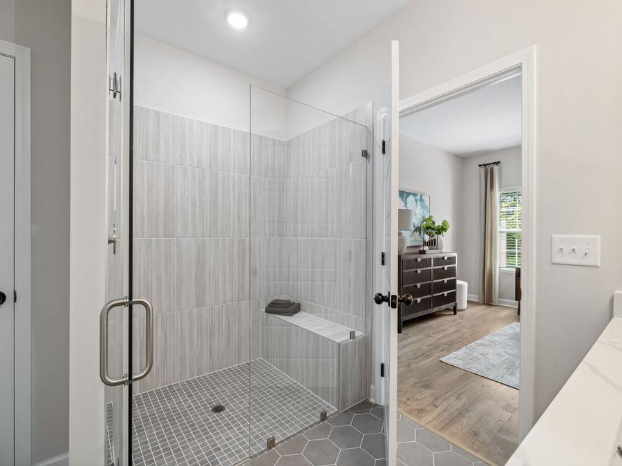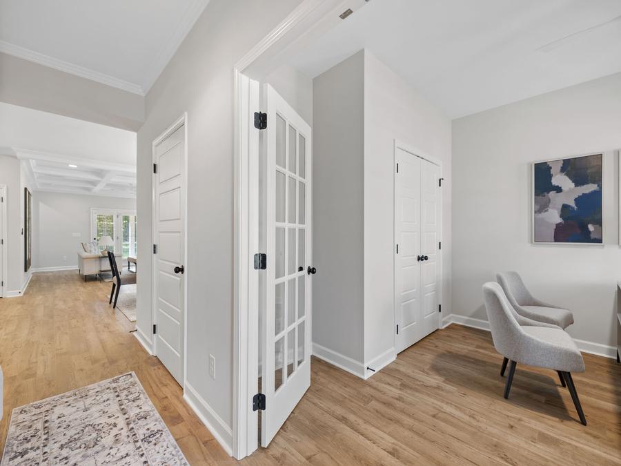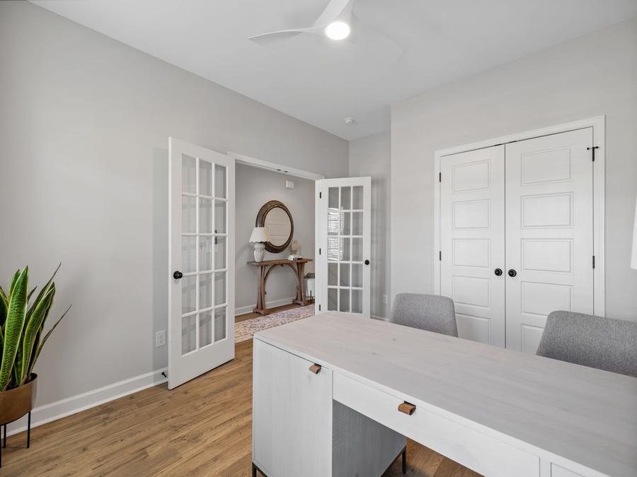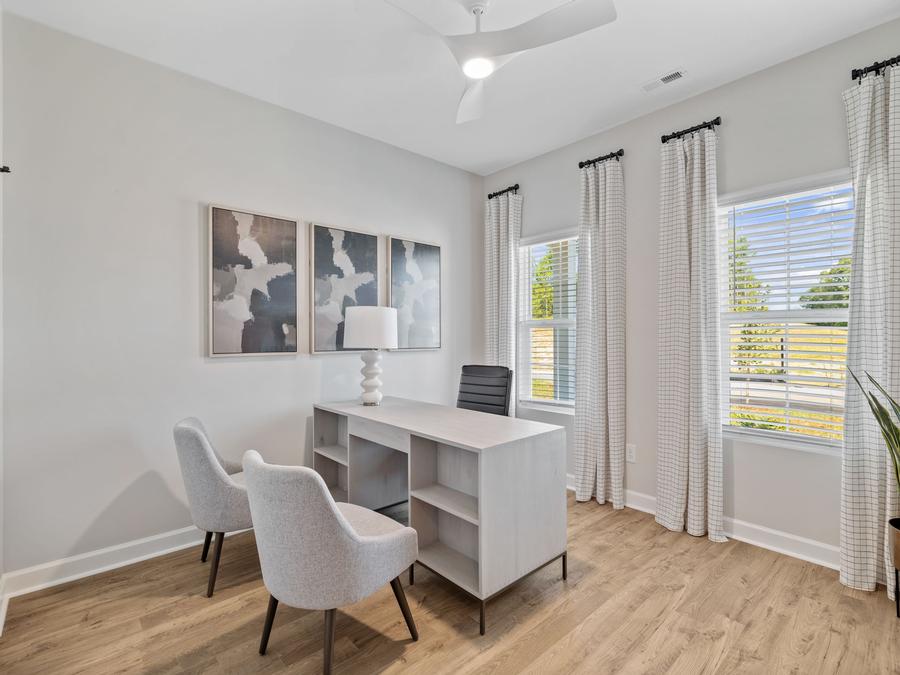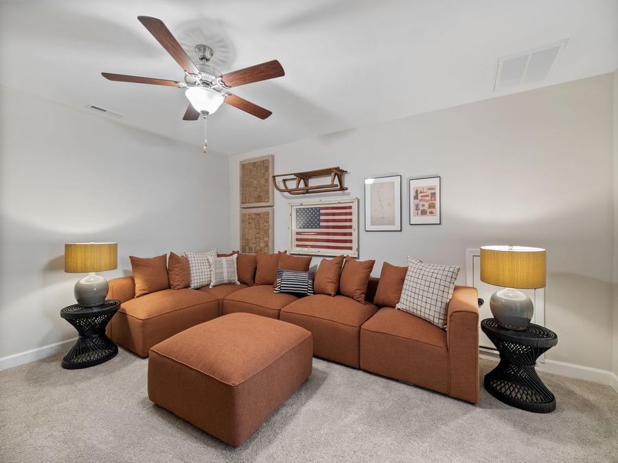 The home designs at Meadowfield Terrace offer open concept layouts that are both functional and spacious. The primary bedroom is located on the main level of the home, which makes it easy to access and provides a sense of privacy. In addition, there is an open concept entertaining space that is perfect for hosting gatherings and also gives flexibility to your home layout. Finally, there is an additional bedroom/office downstairs that can be used for a variety of purposes.