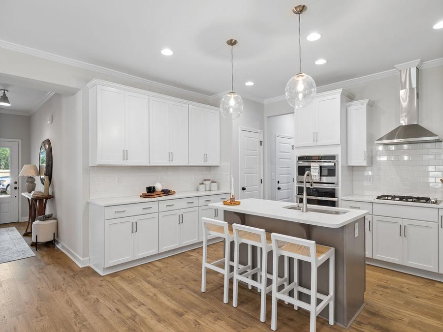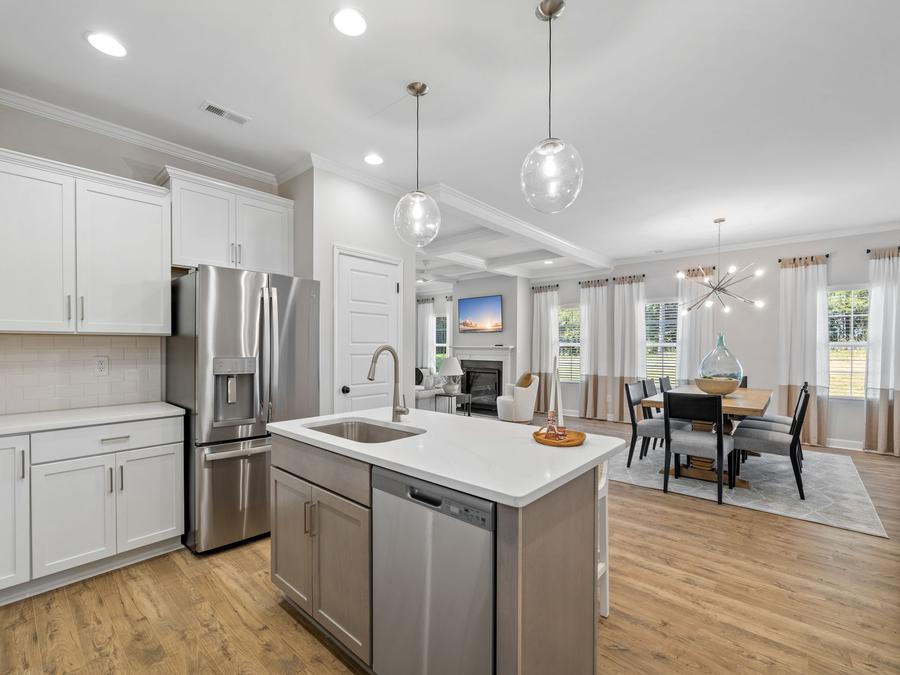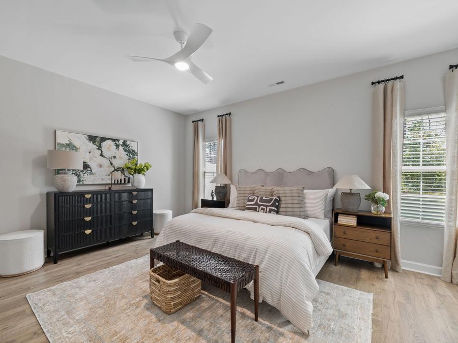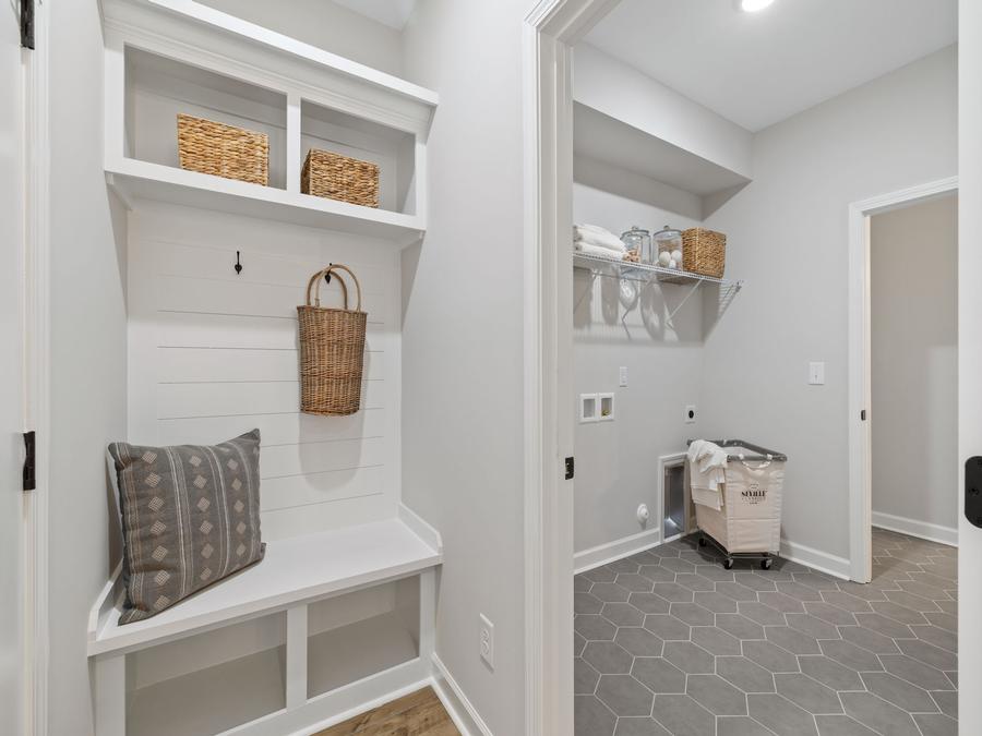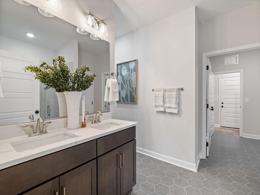 The home designs at Meadowfield Terrace offer open concept layouts that are both functional and spacious. The primary bedroom is located on the main level of the home, which makes it easy to access and provides a sense of privacy. In addition, there is an open concept entertaining space that is perfect for hosting gatherings and also gives flexibility to your home layout. Finally, there is an additional bedroom/office downstairs that can be used for a variety of purposes.
