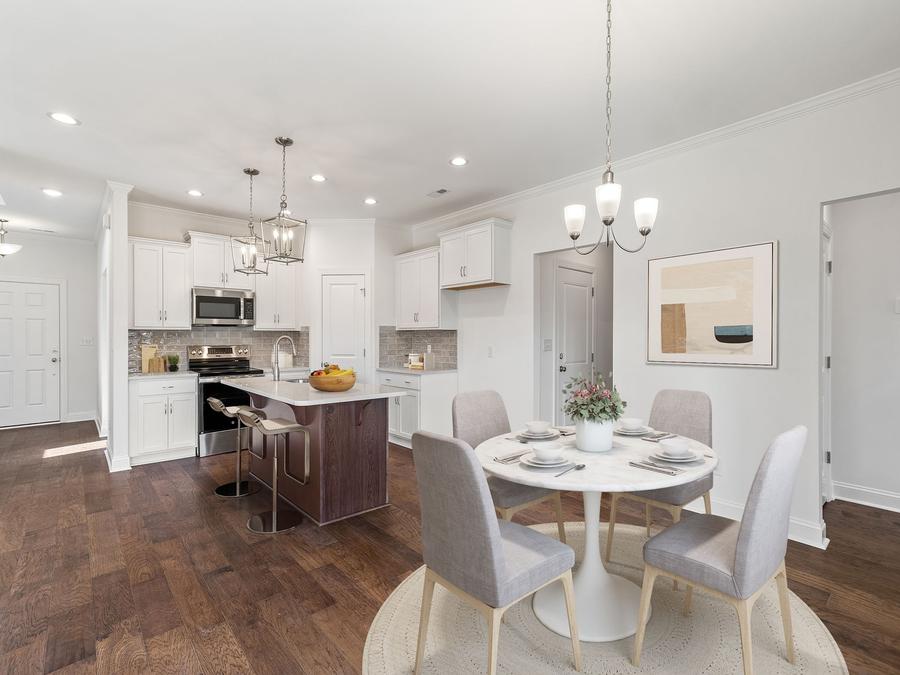 | Quaint community with just 16 lots right off Lasater and Peace Haven. Cementous siding and craftsman style give the homes great appeal. Just enough yard space to enjoy without spending hours on it! The Farris Plan gives off the homes of Charleston in design. Primary bedroom and another bedroom with its own bathroom on the main level. Open floor plan has 9ft ceilings on main level and ample natural light especially with the 9ft sliding glass door off the great room onto rear covered porch! Upgraded engineered hardwood flooring throughout main level including the primary bedroom & closet. Oversized tile shower in the primary bath. Kitchen counters have upgraded quartz on white perimeter cabinets with contrasting pecan wood on island. Stainless steel appliances. Drop zone & laundry room close to garage. 2nd floor has 2 bedrooms, dual vanity in full bath, loft with closet, homework nook and spacious unfinished room for storage. See pics for floor plan and mood board. {FARRIS PLAN - A} | |||||||